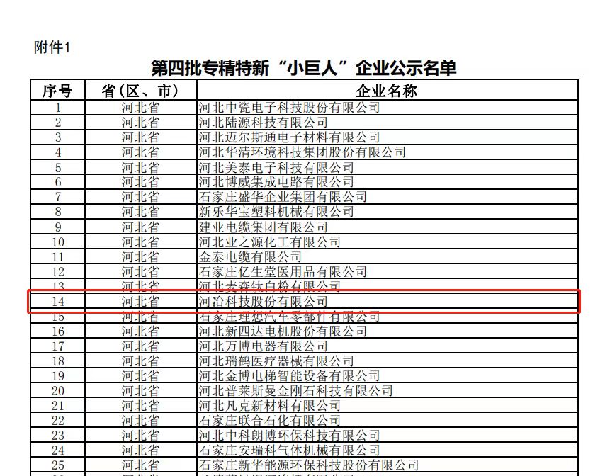 2022年國家工信部第四批專精特新“小巨人”企業(yè)已完成公示,河冶科技股份有限公司通過嚴格的審核,獲得國家級專精特新“小巨人”認定。這是繼獲得河北省專精特新示范企業(yè)榮譽稱號后,首次獲得國家級“小巨人”的認定,體現(xiàn)了公司在專、精、特、新四個領域的長足發(fā)展。