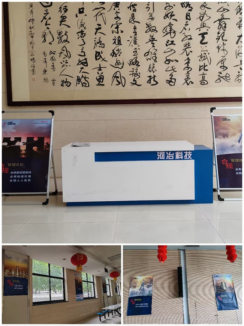 營造良好的合規氛圍也是合規工作開展的一劑良方。我們將合規文化年宣傳海報張貼在辦公樓大廳、多功能會議廳、員工食堂內,讓員工走到哪里都能感受到合規理念就在我們的身邊。廣大員工還在領導的帶領下吶喊出響亮的合規管理口號“弘揚合規文化 踐行合規使命”、“依法治企、合規經營、規范有序、風險可控”,并進行莊嚴宣誓“合規有我”。